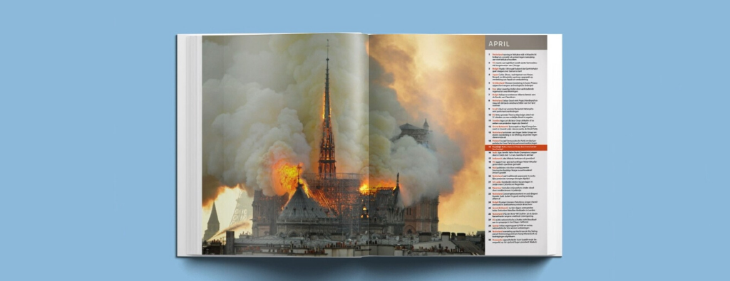 Iedere maand begint een grote, iconische foto en een overzicht van de belangrijkste gebeurtenissen.